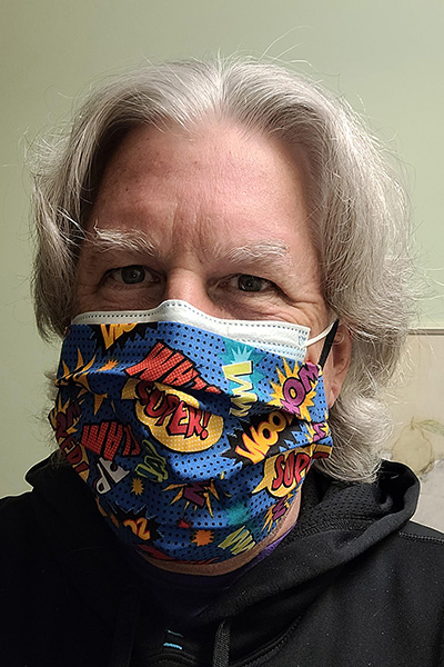 As the pandemic hit the East Coast, my barber shop closed, leaving me few prospects to get my hair cut for the foreseeable future. At the same time, people began to improvise masks. I vowed not to cut my hair again until an efficacious vaccine was running through Dr. Fauci’s and my veins. I was able to amuse myself in many ways, among them my “art project”: creating a monthly “Hair and Mask Update” on social media.